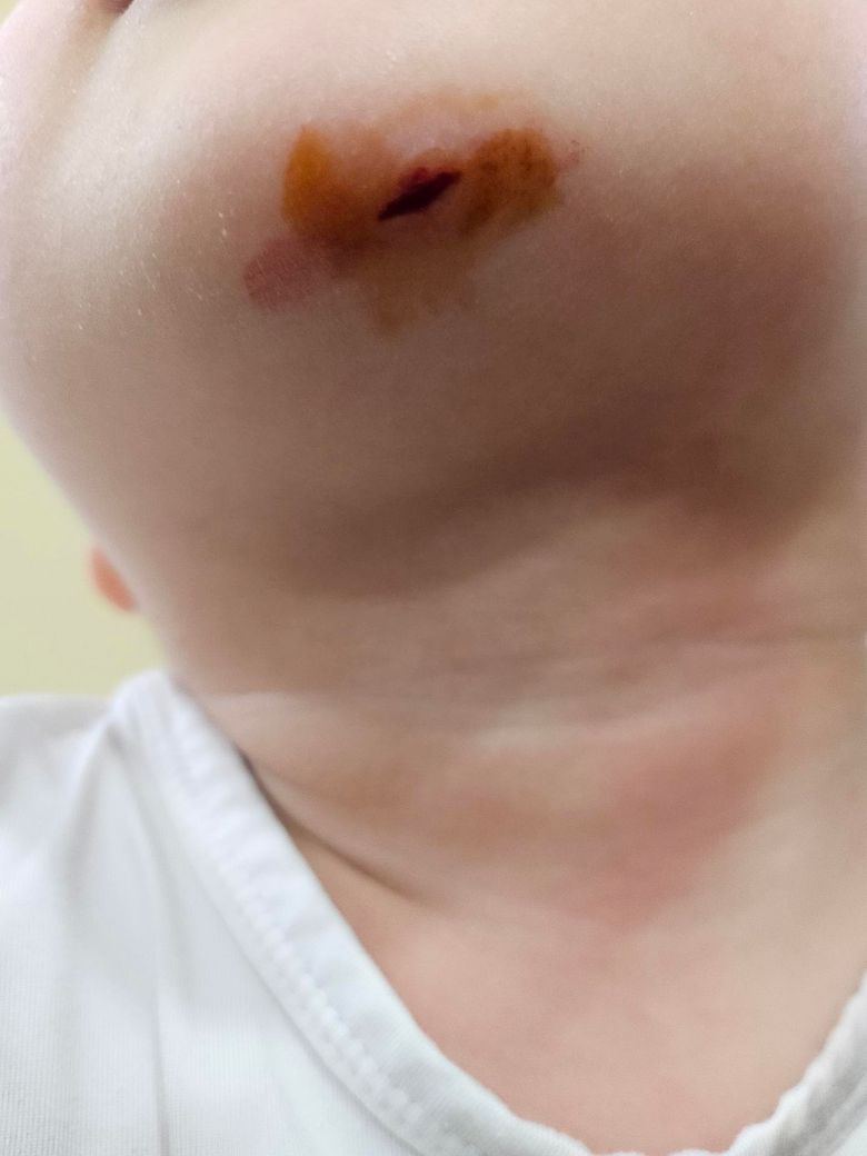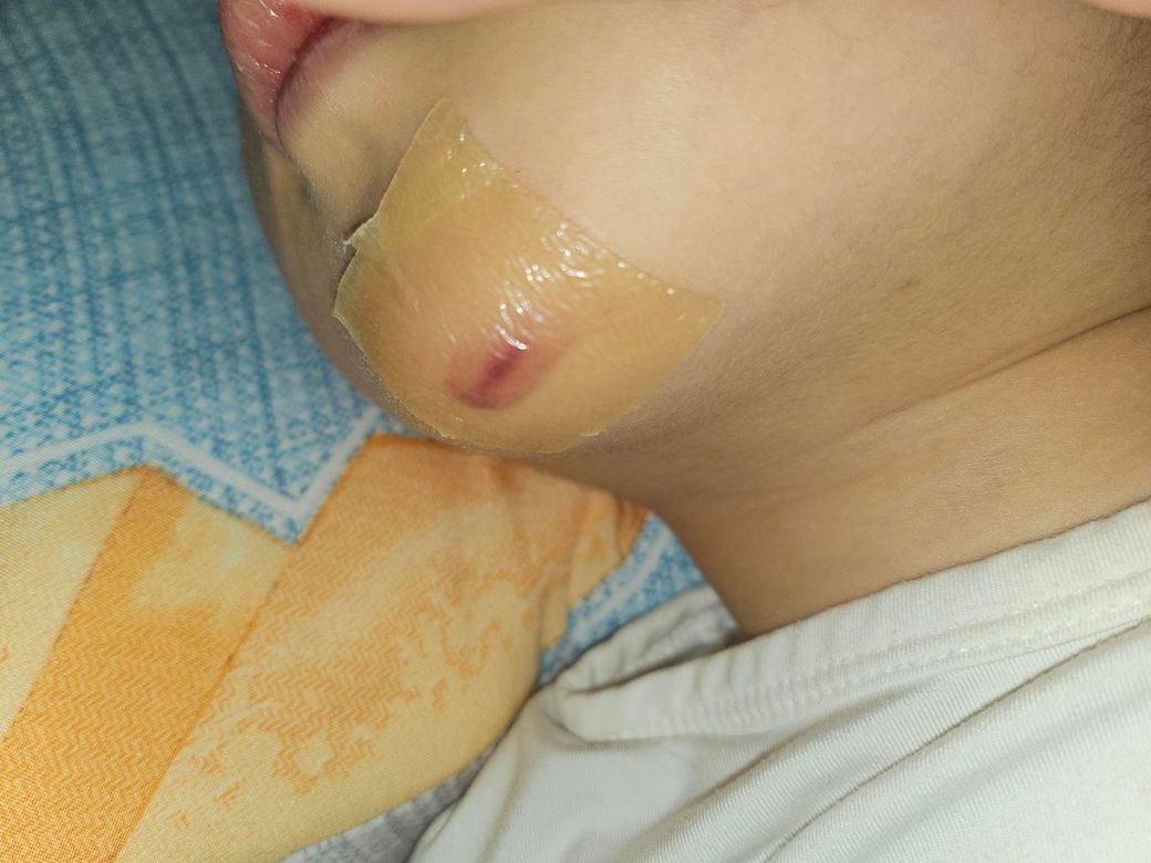 올해 4살된아기가 턱쪽에 가로1cm정도
