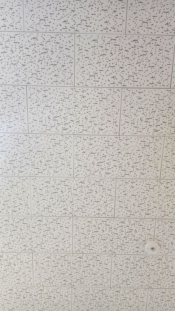 일반 사무실 천정 마감재로 많이 사용되는 석고텍스로 시공시 흰가루와 같은 먼지가 많이 날리는 특징이 있습니다.