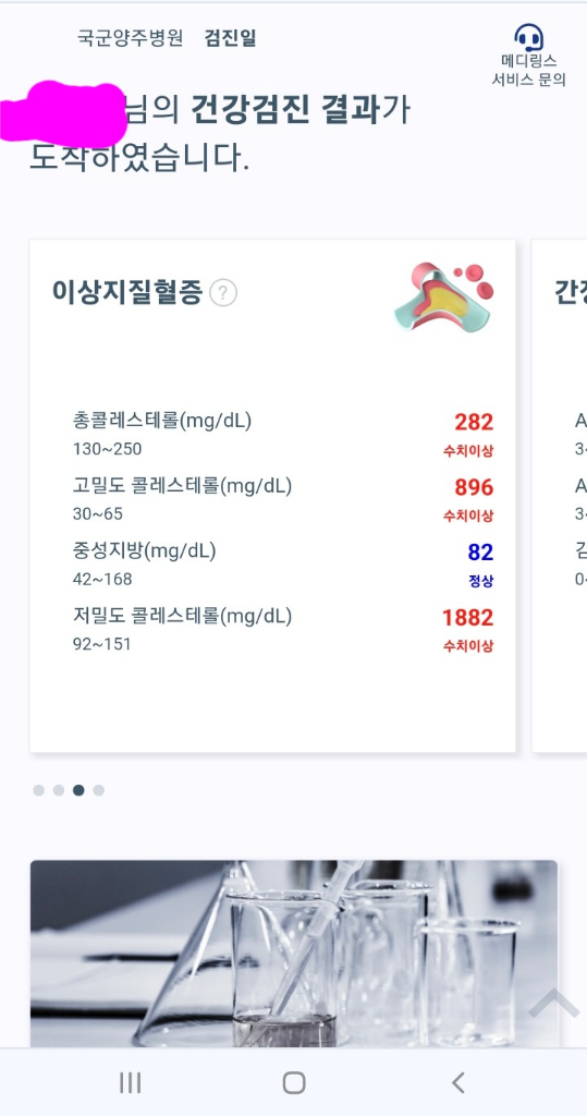 앞서 간기능검사는 이상했는데 뒤에 콜레스테롤 검사는 아예 말이 안되네요