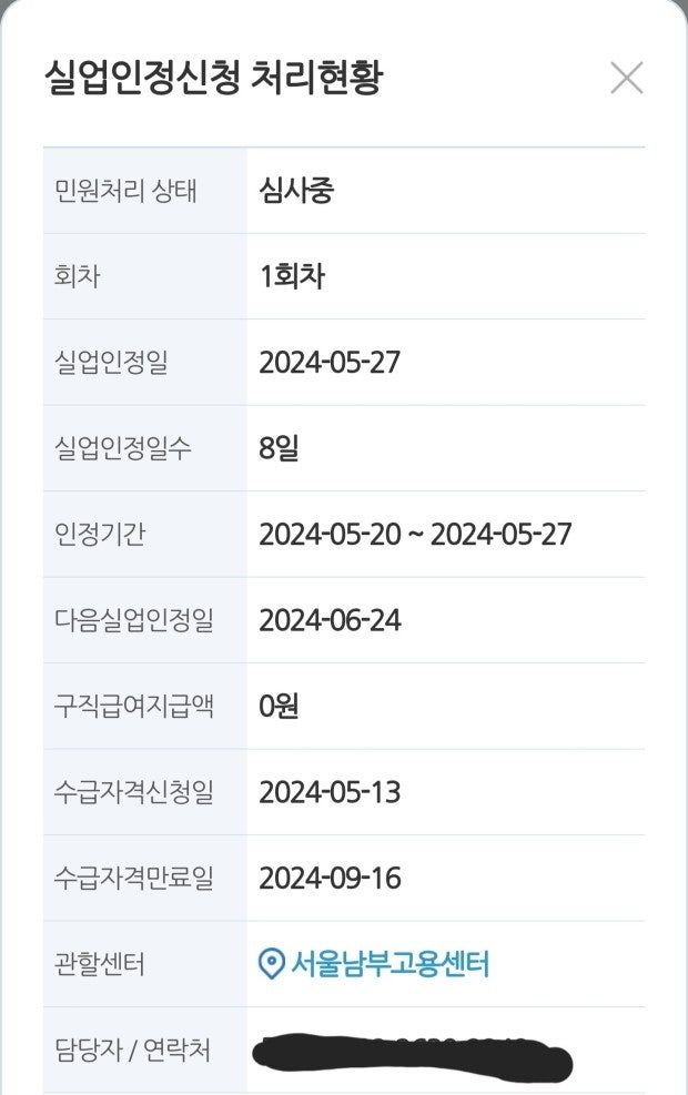 이후 5월 27일 1차 실업인정이되었습니다.
