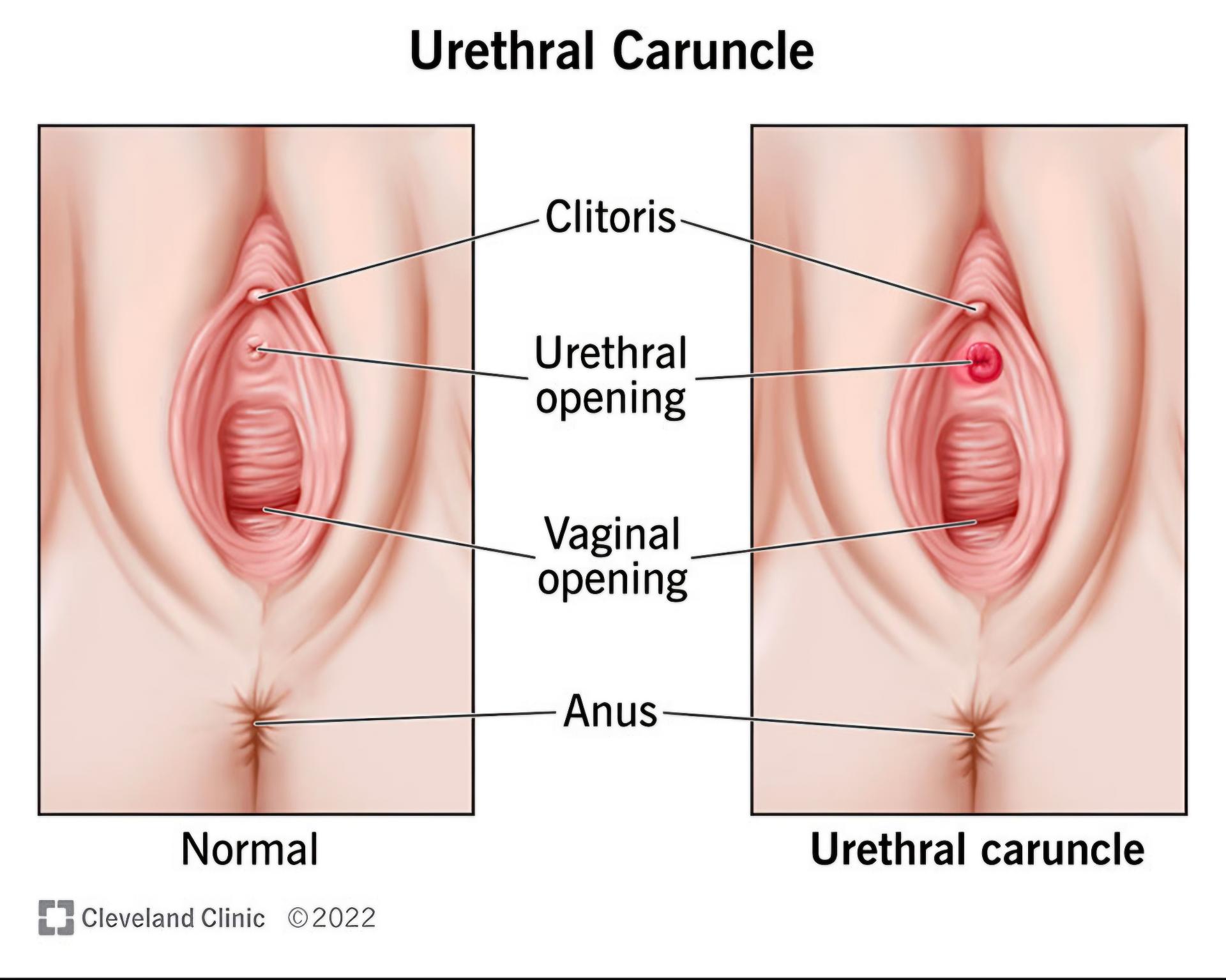 요도 카룬클은 악성인 경우가 드물고, 대부분 호르몬 변화나 점막 위축, 마찰로 생기는 양성 병변입니다. 크기 변화가 없고 출혈이나 통증이 없다면 경과 관찰만 하기도 합니다. 다만 점막이 계속 심하게 붓거나 색이 진해지거나 쉽게 출혈하면 국소 스테로이드 연고나 에스트로겐 연고 치료를 고려합니다. 아주 드물게 모양이 비전형적일 경우 조직검사를 하기도 합니다.