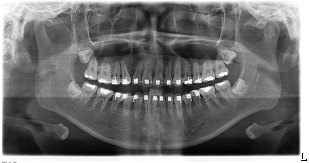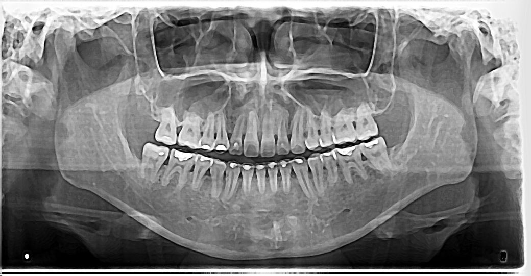 안녕하세요. 1번째 사진은 20살 첫교정 전에 장치만 달은 엑스레이구요. 오른쪽 윗 송곳니 어릴때 빼서, 저때도 비대칭으로 살짝 턱이 왼쪽으로 틀어져있었어요.