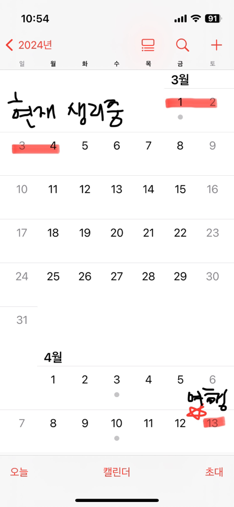 이번 생리 끝난 후에 기간이 5주가 남아있는데