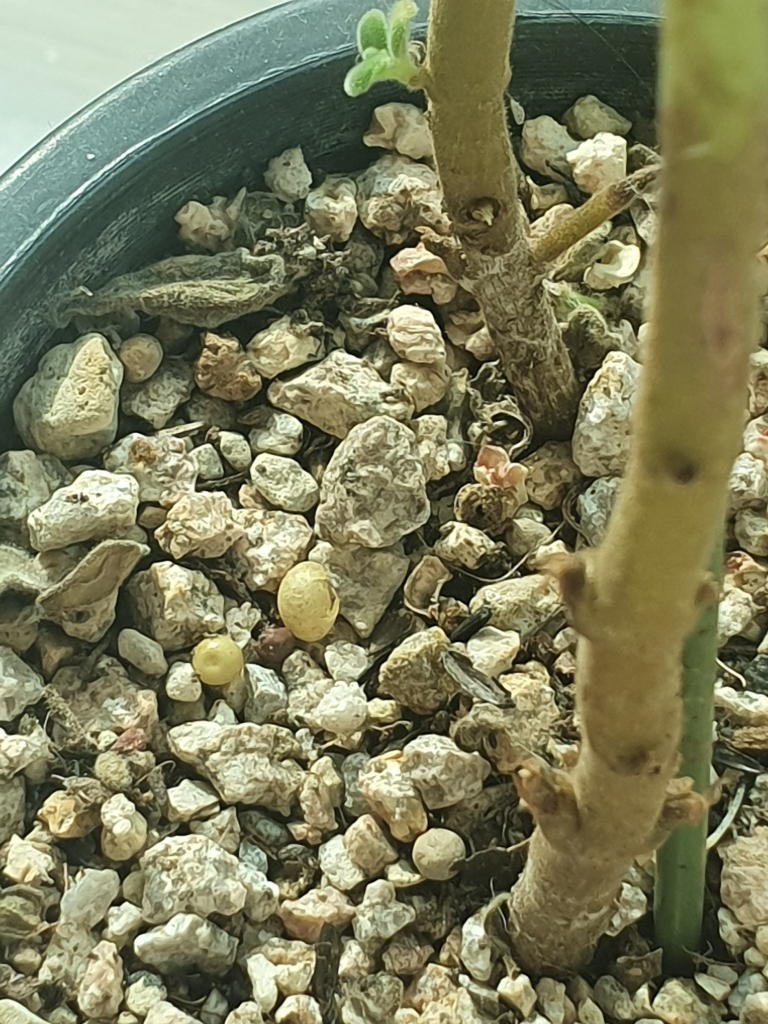 안녕하세요. 바닷가에서만난비둘기입니다. 알같이 생겼는데 알이 아닐수도 있어요 아주 오래전에 비슷한것을 본적이 있어요 맞는지는 모르지만 곰팡이 버섯 종류일수도 있어요 . 핀셋으로 찢어서 확인을 해보세요 궁금하네요.