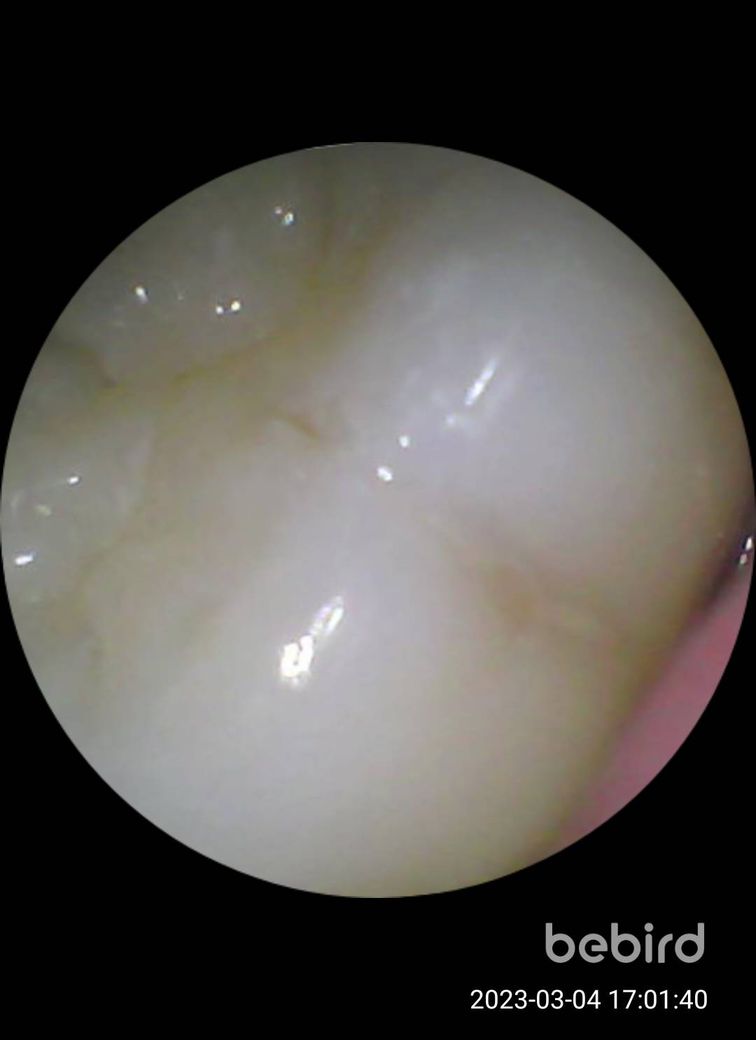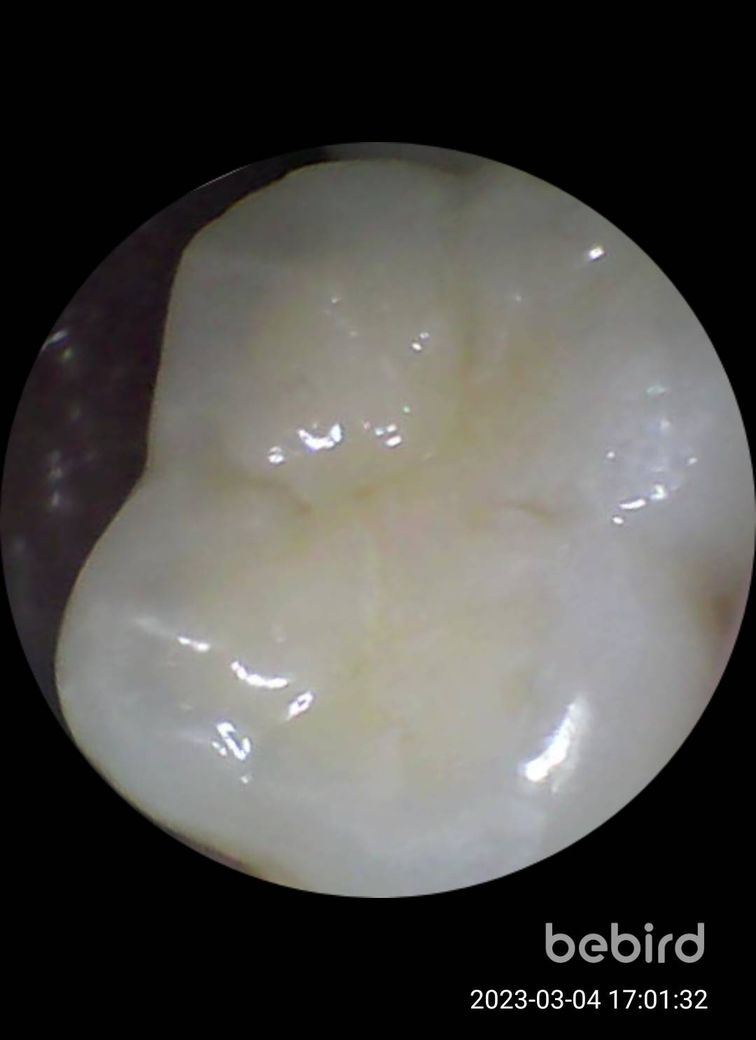 눈으로 보았을 때는 치료를 하는 것이 맞아 보입니다. 눈으로 보았을 때 해당 부위가 상당히 약해보이며 보통 검사 기구를 넣으면 해당 부위가 푸석하게 부러질 수 있습니다. 이미 초기 병소는 지났으므로 해당 부위를 치료하는 것이 맞다고 보여집니다.