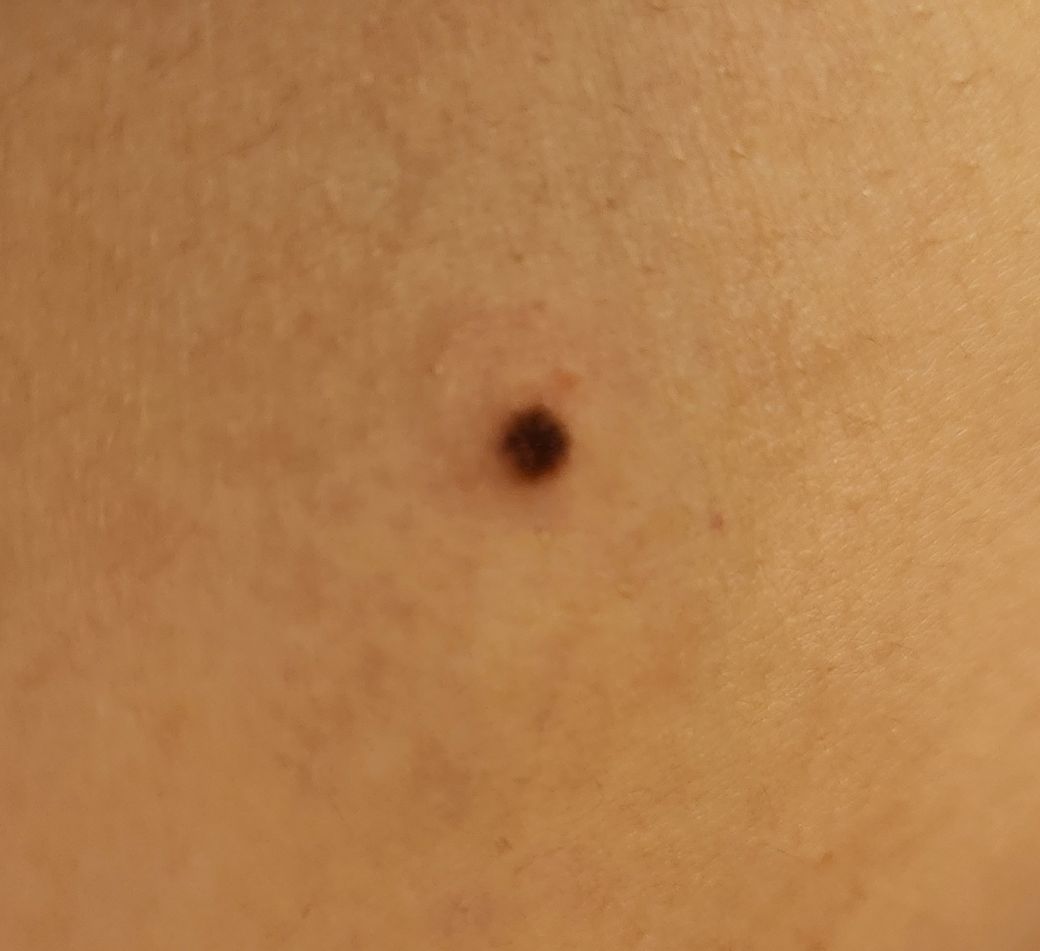 갑자기 진한 검정색의 0.3cm정도 되는 약간 큰 점이 배에 보여서