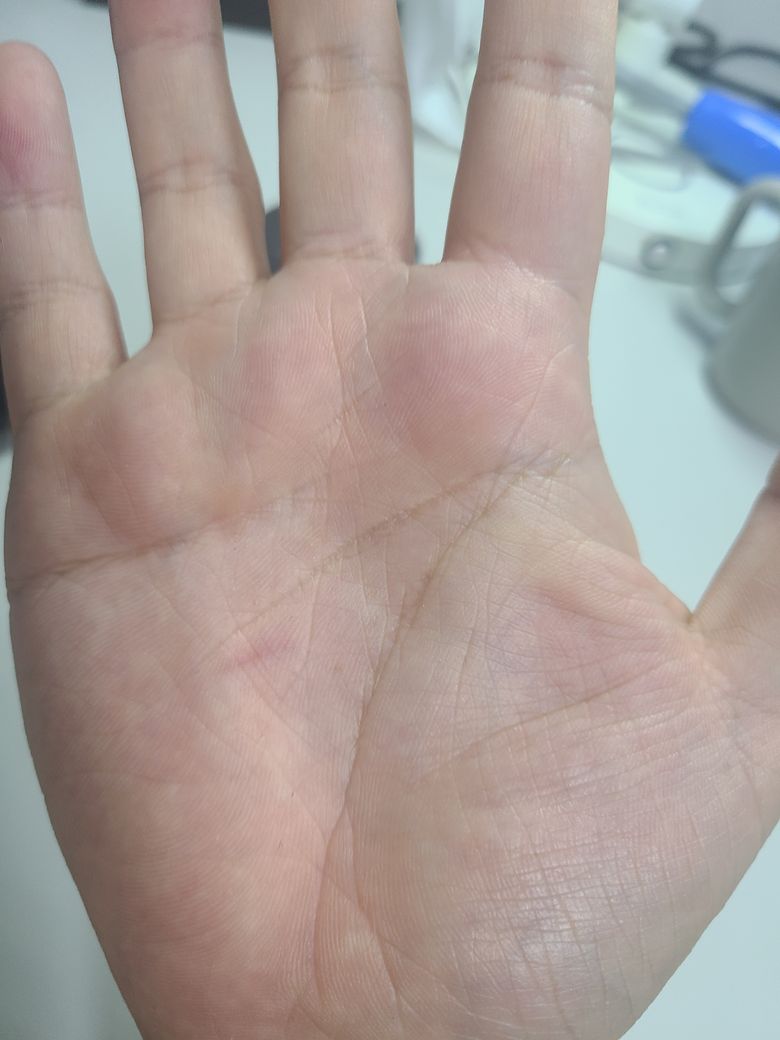 손바닥에 가로 형태의 빨간줄이 생겼습니다