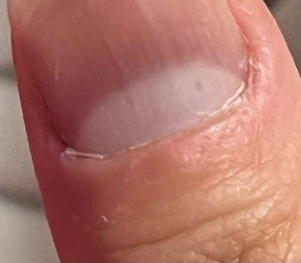 언젠가부터 손톱 하얀반달에 점이 생겼는데, 딱히 아프거나 가렵지도 않고 괜찮습니다.