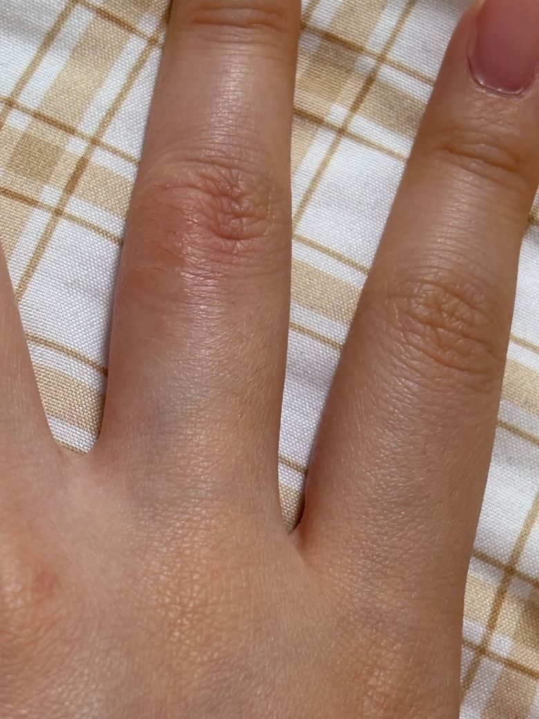 저녁으로 라면 먹었는데 먹고 나니까 갑자기 간지럽더니 긁었는데 저렇게 부었어요 옆 손가락이랑 비교했을때,,