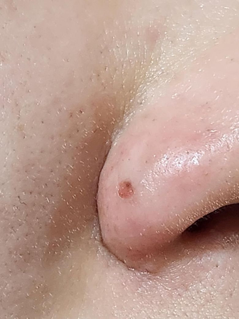 코부분에있는상처부분이에요 실제로는 더 까맣게되어있는데요, 원래 블랙헤드였던거같습니다... 전에 봣거든요... 그래서 피지연화제를 아무리써도 제거도 안돼고 오히려 주변만 저렇게 까져요.. 엄청 깊숙한건지... 제거방법좀 알려주세용..