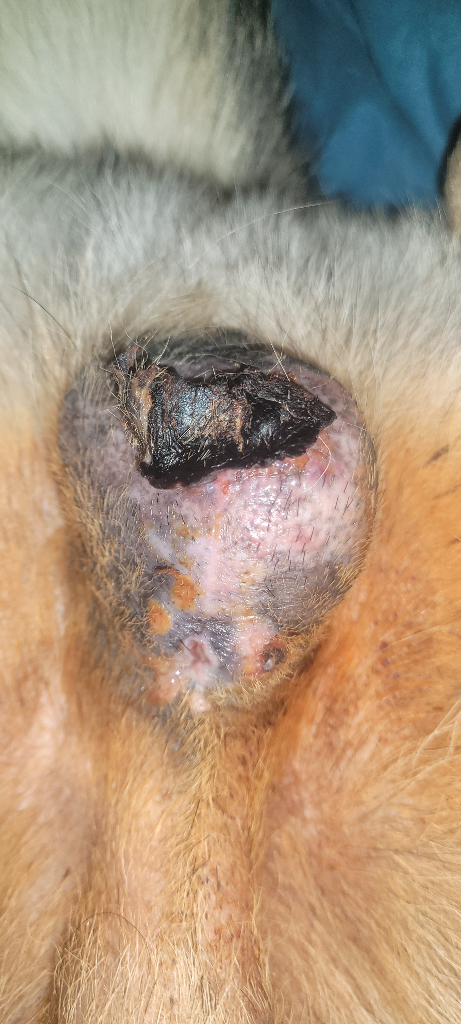12월 22일에 수술 했으면 지금즈음 봉합사를 풀어야 할 시기인데 이렇게 빵빵하다면 수술 후 장액성 분비물이 차거나 혹은 넥칼라 착용하지 않았어도 외부 요인에 의해 술부 오염이 생기는 등 여러요소에 의해 감염창이 생겼을듯 하네요
