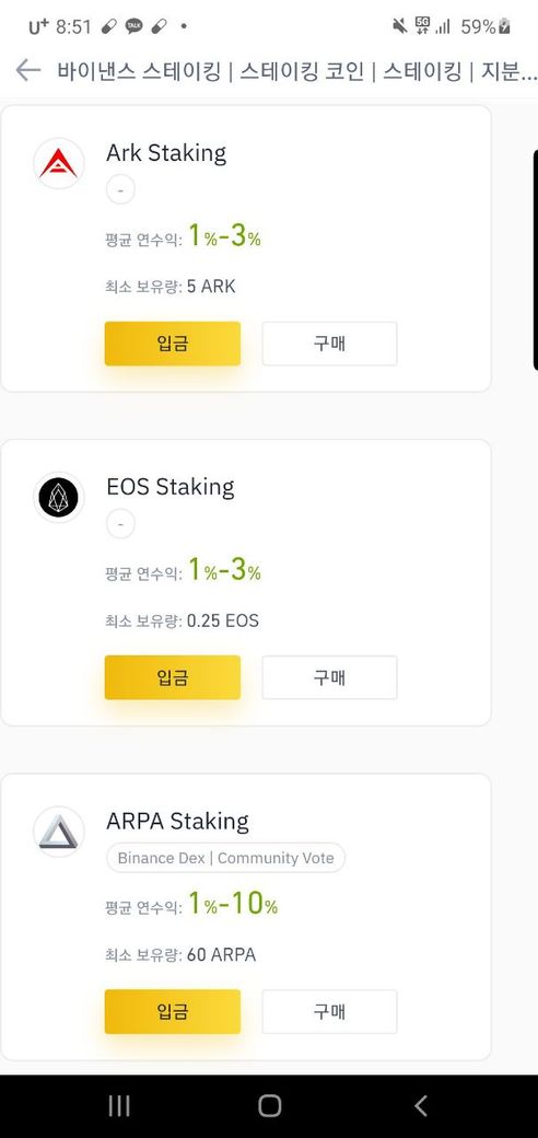 바리낸스 스테이킹은 상시 상품과 한시적 상품이 있습니다. 한시적 상품이라는 것은 특정 기간 동안 높은 이자를 제공하는 것입니다. 반면 상시 상품은 이자율은 낮지만 기간이 정해져 있지 않습니다.