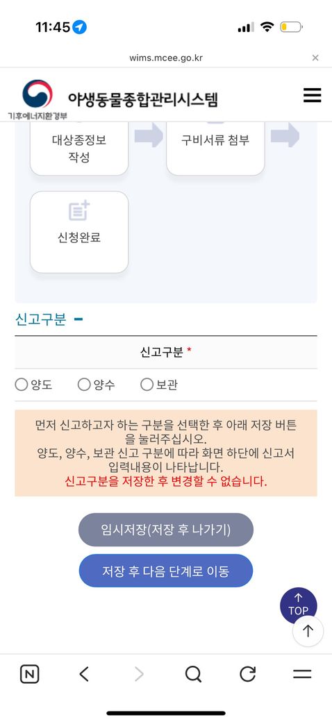 아래 사진과 같이 신고부분에 양도,양수,보관이 있습니다.