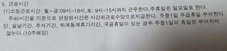 일요일은 유급휴가고 주중1일은 무급휴가입니다(주40시간이 넘으면안되서)