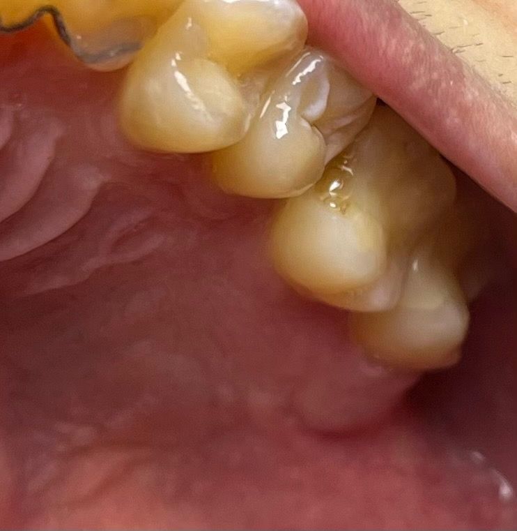 아마 충치가 이미 진행되고 있었을 겁니다. 범위로 봤을 때에는 인레이 가능성이 높습니다.