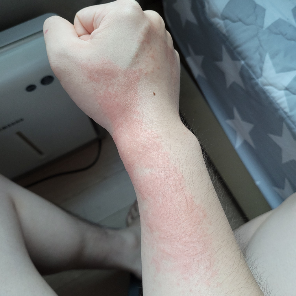 오른팔은 처음보다 많이 번졌고 왼팔도 언제부턴지 슬금슬금 생기더니 번졌습니다. 약은 이제 2일째 아침약(항히스타민제 + 스테로이드)을 먹은 상태고 락티케어 로션을 하루 3번씩 발라주고있습니다.
