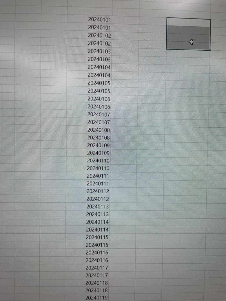 사진처럼 20240101 부터 20241231까지 나열을 해야하는데 두칸씩 잡고 배열을해야합니다.