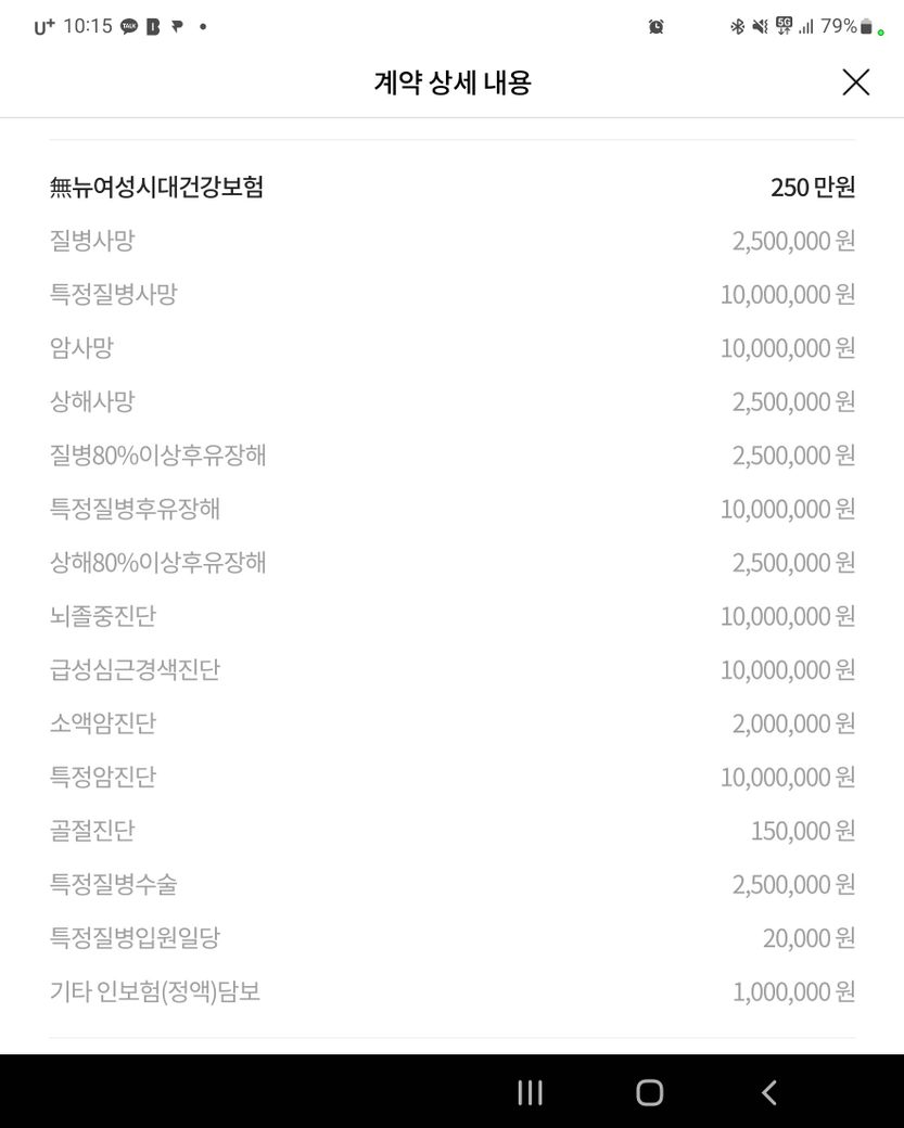 어머니 삼성생명 보험 보장 항목에