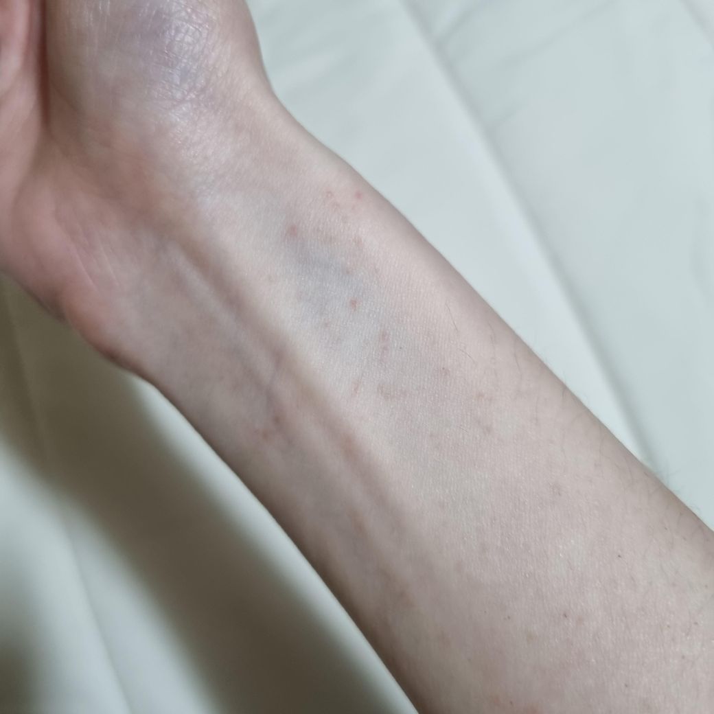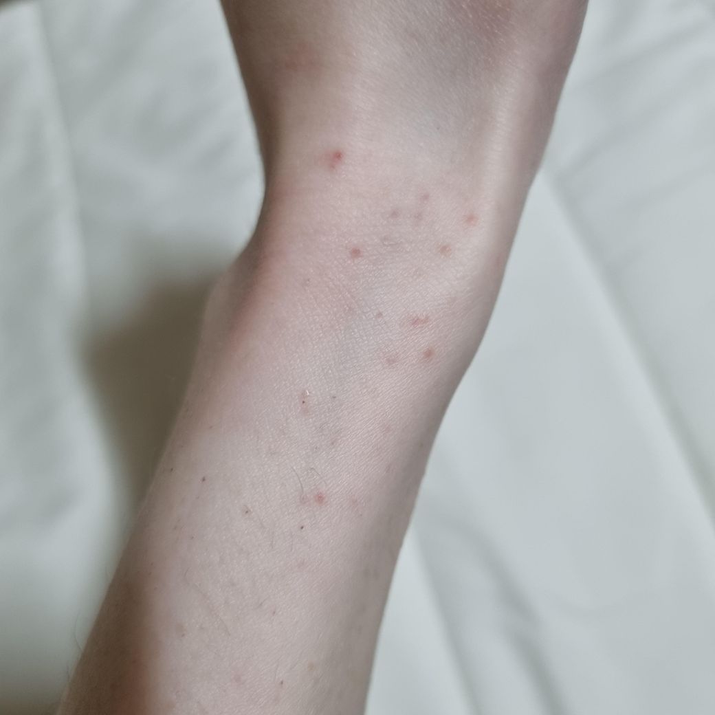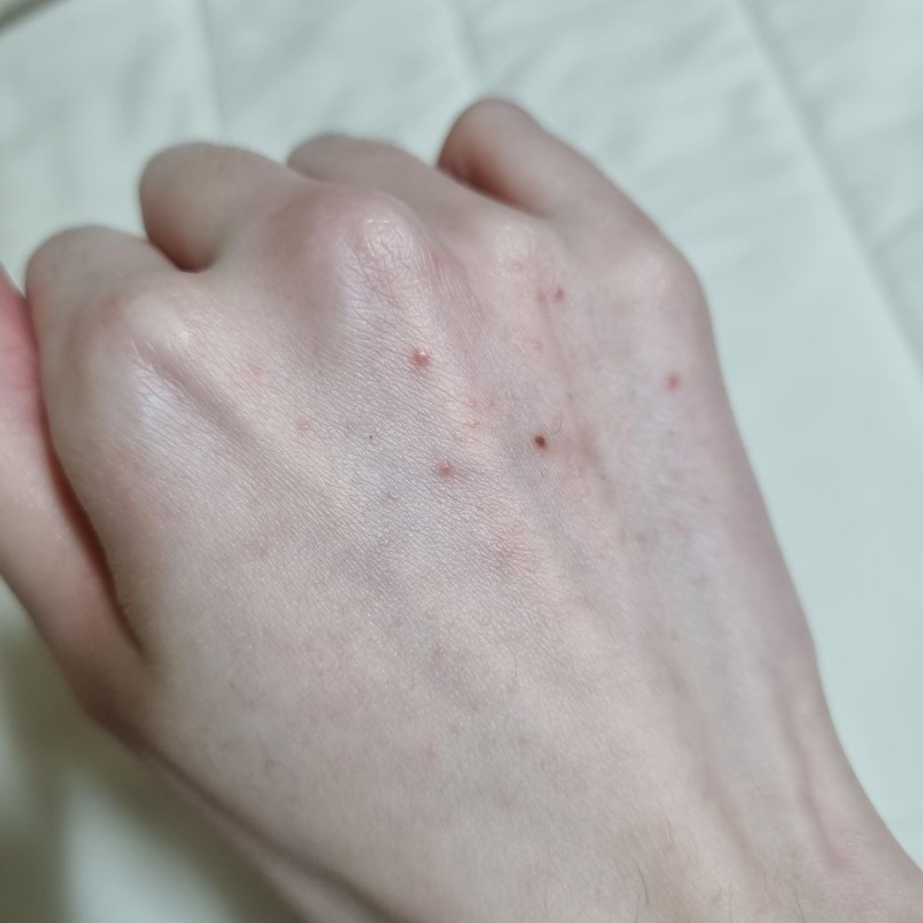 왼쪽/오른쪽 손등과 팔목에 우둘투둘하게 올라왔어요.