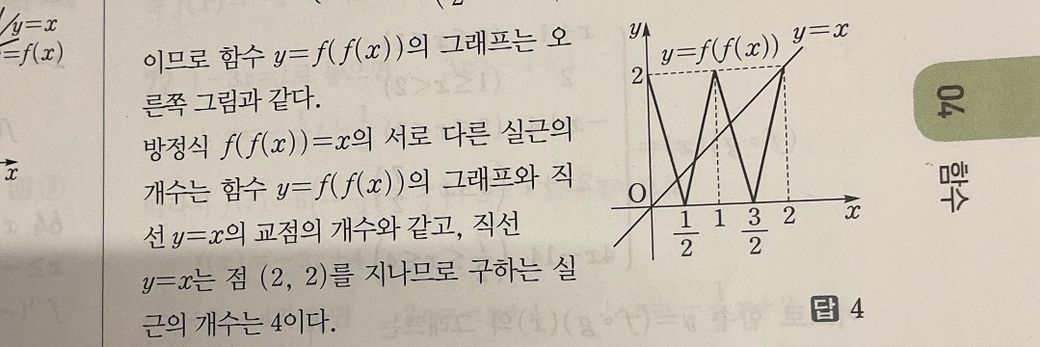 f(f(x))=x에서 서로 다른 실근의 개수가 y=x의 교점의 개수인 이유를 모르겠어요…..