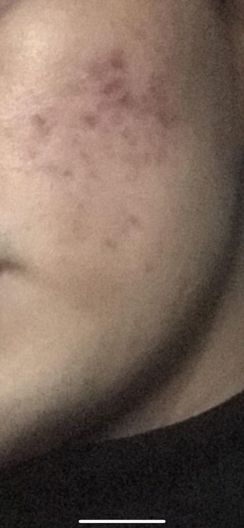 하지만 여드름이 발생했던 자리에 손으로 짰던 나쁜 습관으로 인해 흉터가 남게되었습니다.