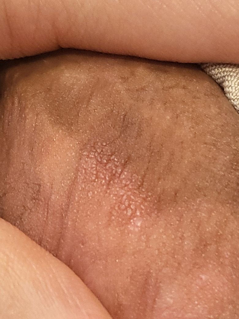 곤지름 보다는 피부 발진 같은 것 같은데, 전에도 비슷한 증상이 다른 부위에 생겼다가 자위 안하니까 사라졌었는데, 병원 방문 전 소견 부탁드리겠습니다