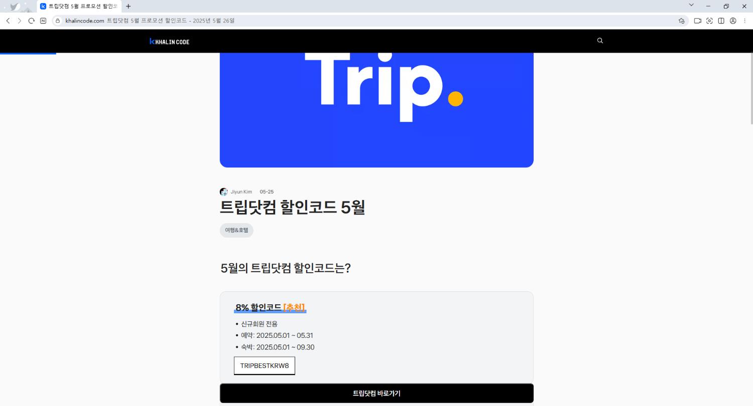 여행 숙박같은 할인코드는 아래 khalincode 사이트 같은곳에서 할인코드 모아놓은곳에서 얻고있습니다
