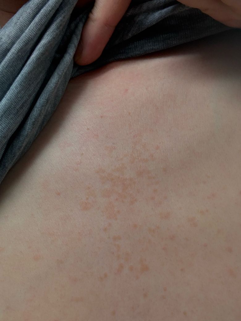 3. 기슴팍에 어루러기 인지 약 바루면 없어지더 한두달 지님 뜌 생겨요