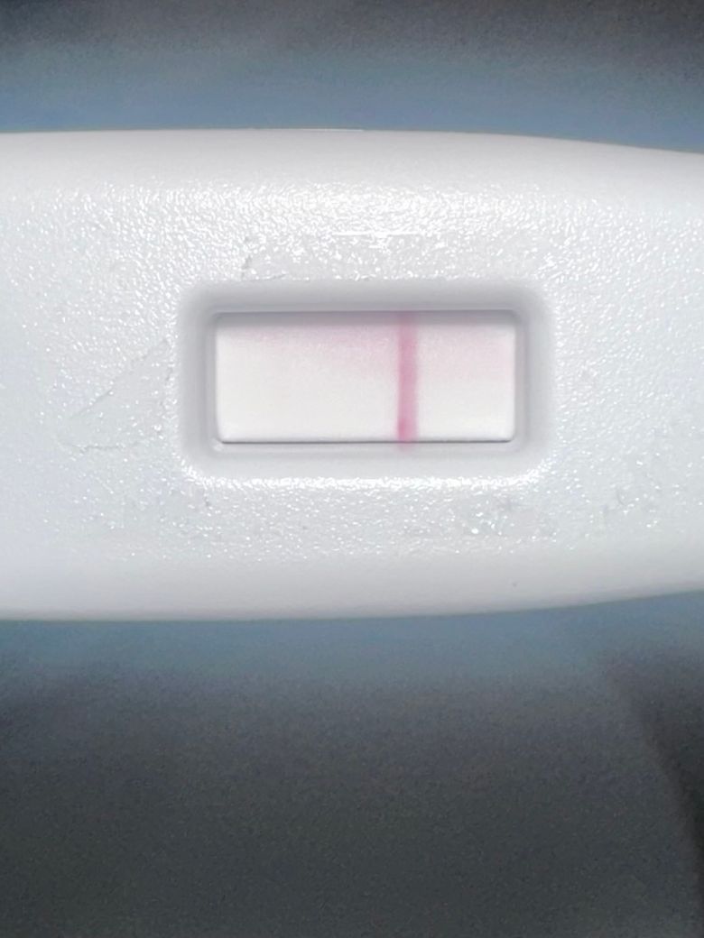 사진상으로는 선명한 대조선 한 줄만 확인됩니다. 임신 양성이라면 대조선과 별도로 검사선이 추가로 보여야 하는데, 현재 사진에서는 두 번째 분홍색 선이 명확히 구분되지는 않습니다.