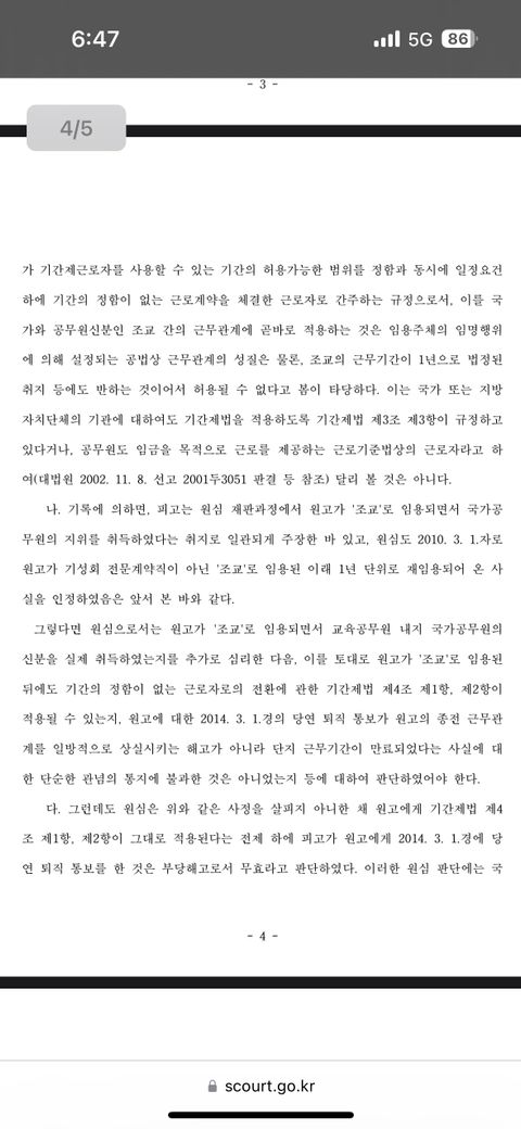 첫번째 사진 하단 : ”해고가 아니라 단지 근무기간이 만료되었다는 관념의 통지에 불과한건 아니었나“