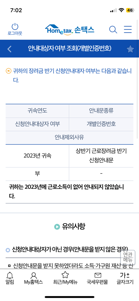 홈택스에 2023년 근로소득이 인식되려면 연말정산을 거쳐야하는데 그러려면 내년 1월은 돼야하니