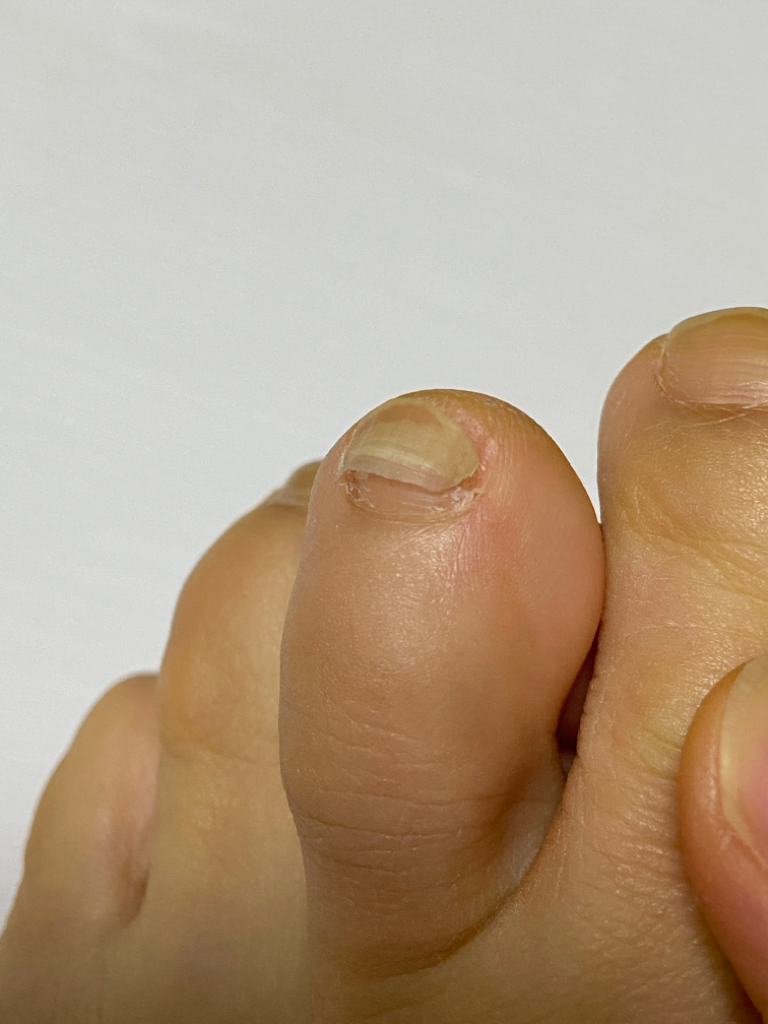 올려주신 사진상으로 판단하기로는 그냥 두셔도 될 것 같습니다. 발톱 근접한 피부 5mm 정도 뒤쪽으로 뿌리부이가 있고 피부로 덥혀 있습니다. 나오고 있는데 피부밑에 있어서 안보일수도 있고, 사람마다 자라나는 속도는 다를 수 있습니다. 뿌리부위가 다치지 않았으면 나올 것이니 좀 더 기다려 보십시요.