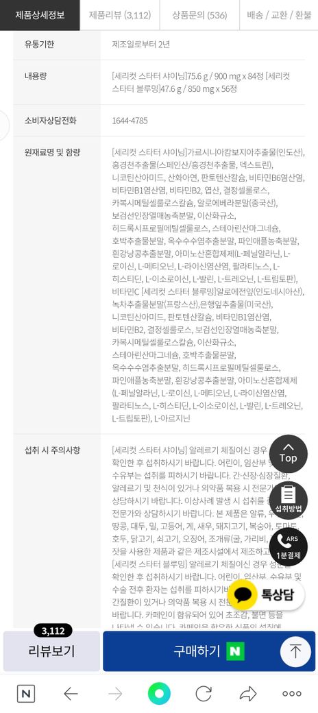 세리박스에서 파는 세리컷 스타터 샤이닝 다이어트 보조제를 먹어도 되는지 궁금해요