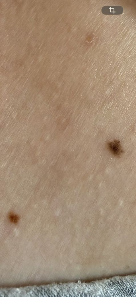 사진상 병변은 색이 균일하지 않고(중심부 더 진함), 경계가 완전히 매끈하지 않으며, 말씀하신 것처럼 크기 변화가 있었다는 점이 확인됩니다. 다만 단일 사진만으로 양성과 악성을 확정할 수는 없습니다.