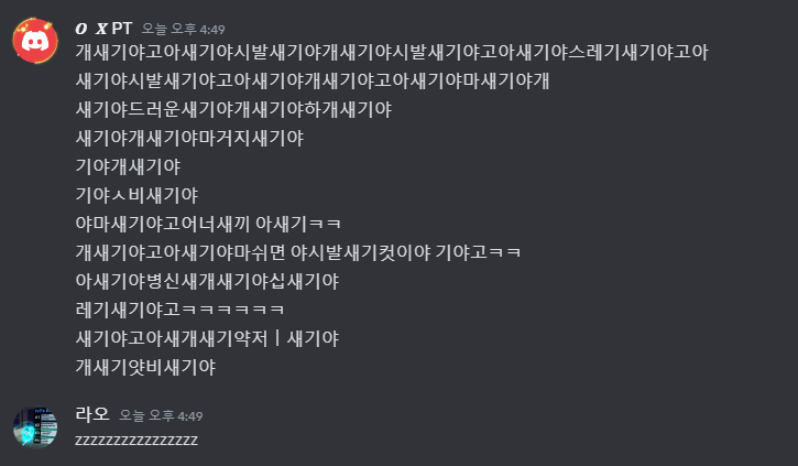 제 닉네임이 라오입니다. 욕 한사람은 레몬,퍼펫 입니다.