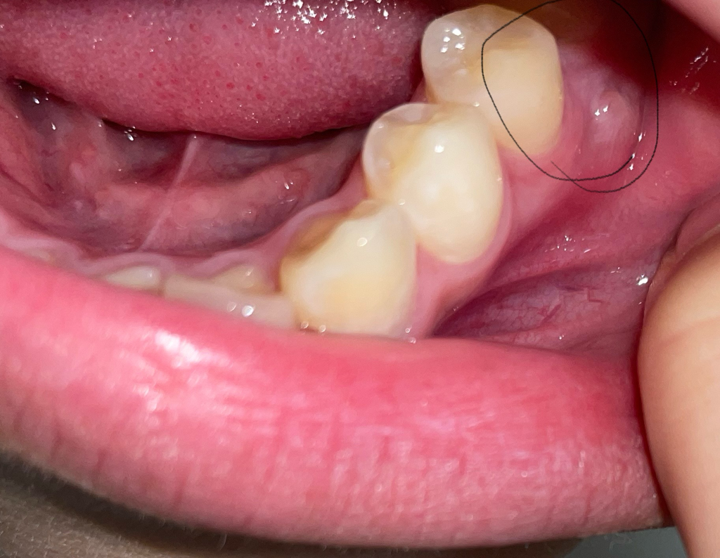 현재 치주낭종증상으로 보이며, 양치를 잘하지 않거나 스케일링을 받은지 오래된 경우 치석이 잇몸을 자극하여 염증반응이 나타난 것입니다. 이 경우 우선적으로 스케일링 및 잇몸치료가 필요로 되기에 치과 진료를 받길 권합니다.