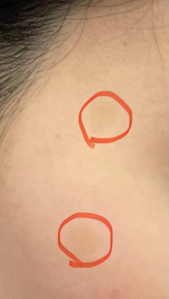 피부에 생긴 연한점 ( 빨간동그라미 ) 이름이 뭔가요 ?