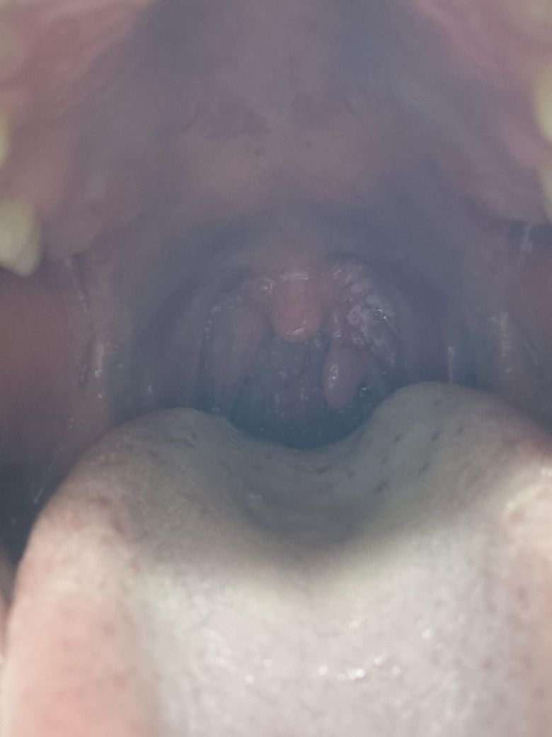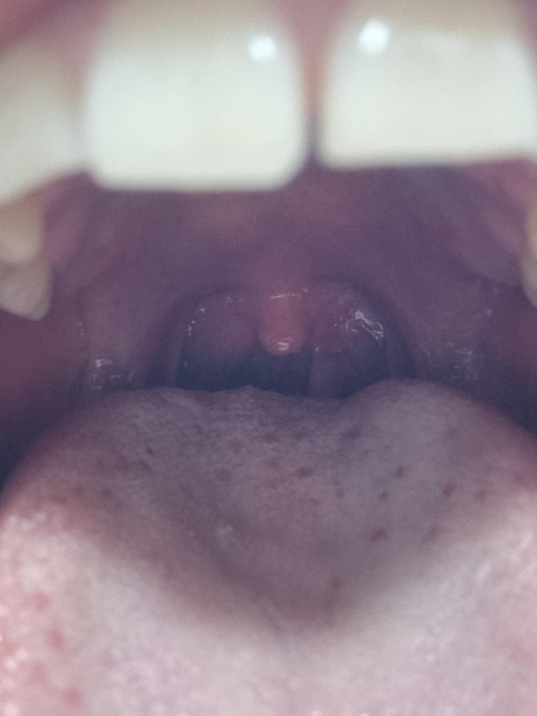 사진상으로는 목젖(구개수) 옆에 매달린 형태의 돌출 병변이 보이며, 형태상 가장 흔하게는 양성 점막 병변(유두종, 섬유성 폴립 등)이 우선 의심됩니다. 말씀하신 것처럼 “달랑거림”이 느껴지는 경우는 실제로 줄기(stalk)가 있는 폴립성 병변에서 흔합니다.