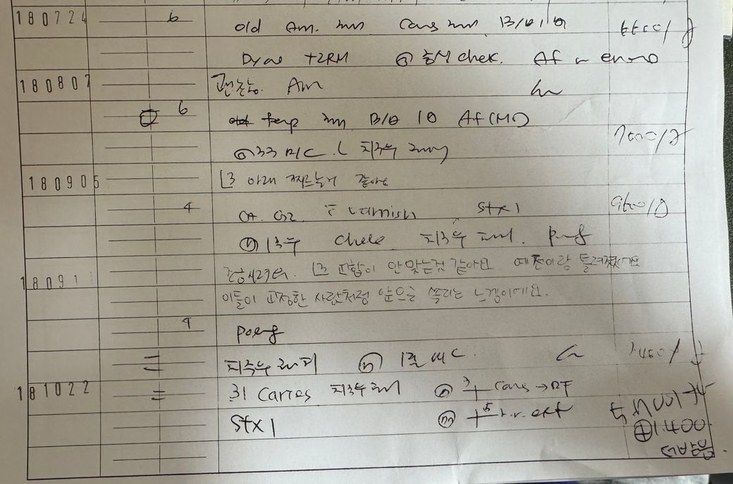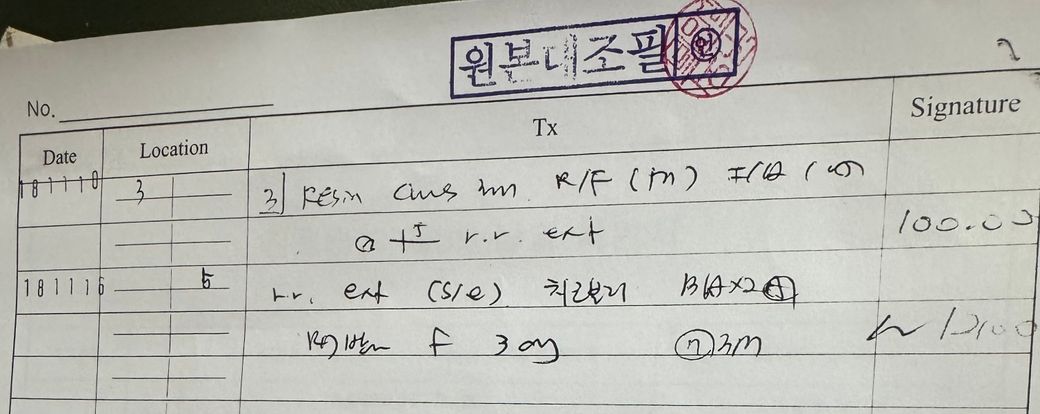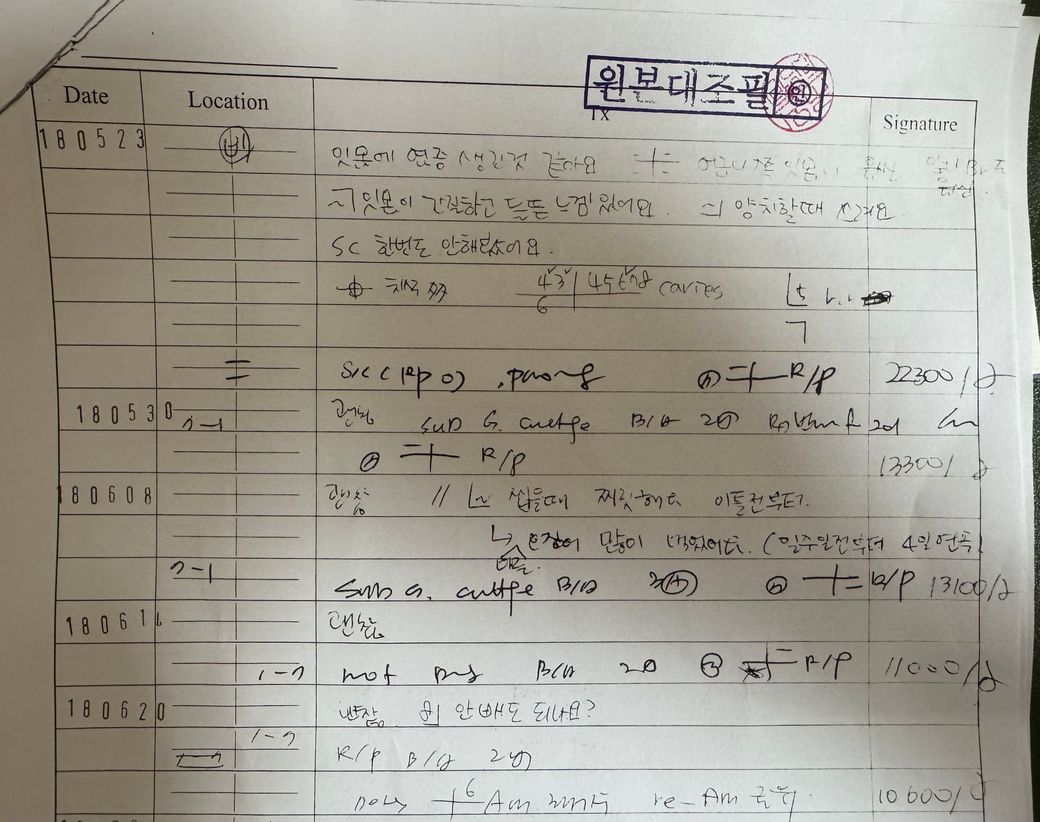예전에 다니던 치과 진료차트를 받아왔는데 아무리 봐도 해석이 안됩니다 도와주세요 ㅠㅜㅠㅠ