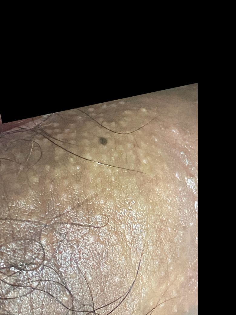 고환에서 음경 둘다 흰색돌기같은게 나와있는데 성병인가요? 가렵거나 작열감등 아무런 느낌은 들지않아요