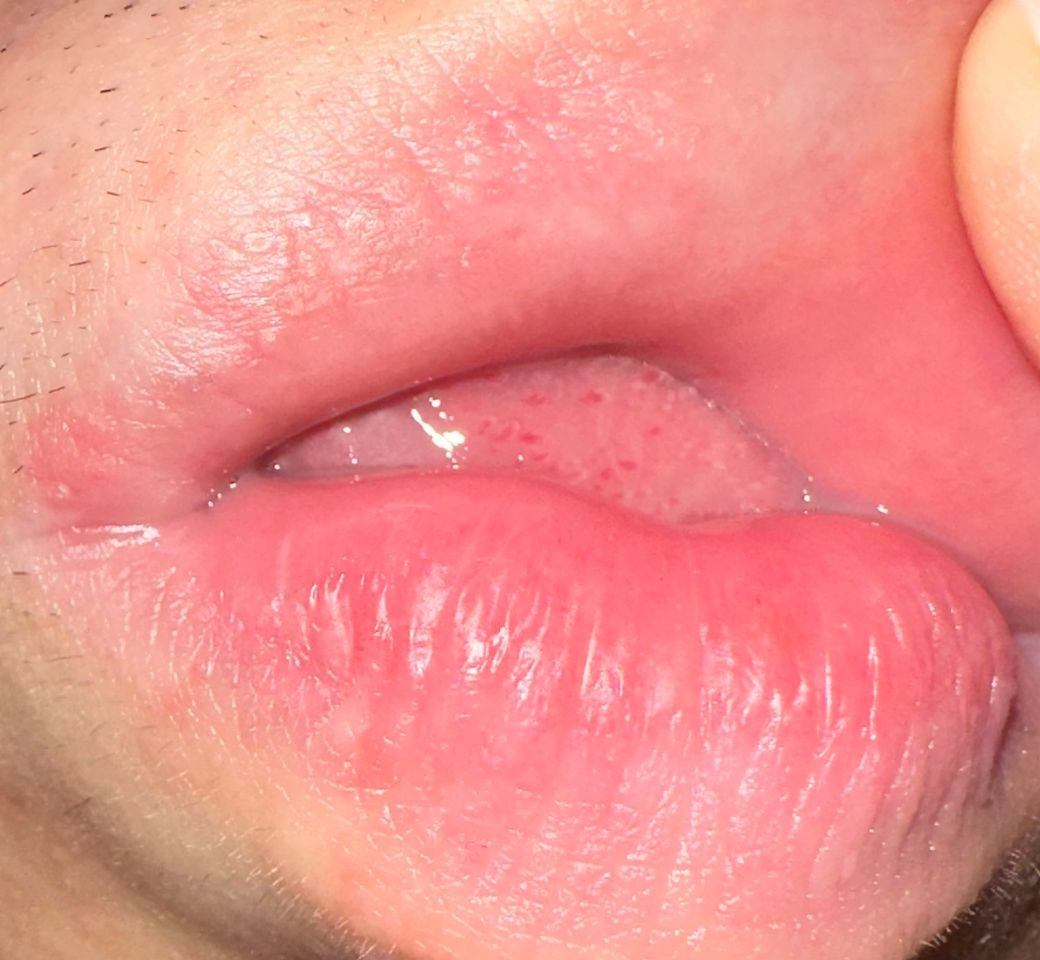 해당 부분이 각질이 올라온건지.. 아니면 피부가 까진건지 아니면 수포인지 모르겠어요ㅠㅠ 헤르페스일까요?