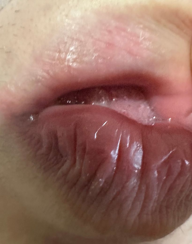 아무리 봐도 수포는 안보이는 것 같습니다. 입술이 건조해 보이는데, 립밤 정도만 바르시고 지켜 보시지요.