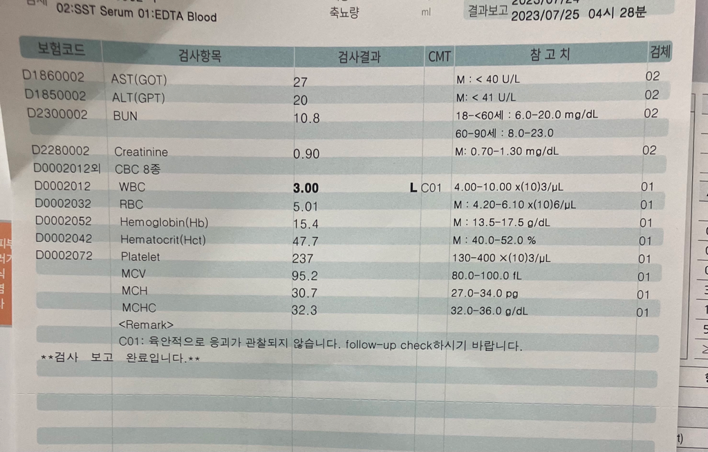 wbc수치가 낮은데 성병검사 다시 할 필요가 있을까요?