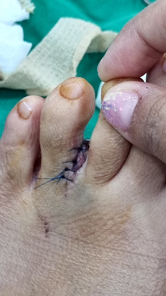 세번째와 네번째 발가락 사이가 찢어져서 급하게 응급실에서 봉합을 받았습니다. 봉합 제거할때가 되서 동네 정형외과에서 제거를 했는데 하자마자 처음 상처 찢어진 그대로 다시 벌어져서 재봉합을 했는데 또 제대로 안꼬매서 다시 상처가 벌어져 재재봉합을 할까봐 너무 걱정이 됩니다. 재봉합 할때 정형외과에서 6바늘 2중봉합으로 재봉합 했다고 하시는데 겉으로봐서는 상처가 더 커진것 같은데 재봉합이 잘된게 맞을까요?