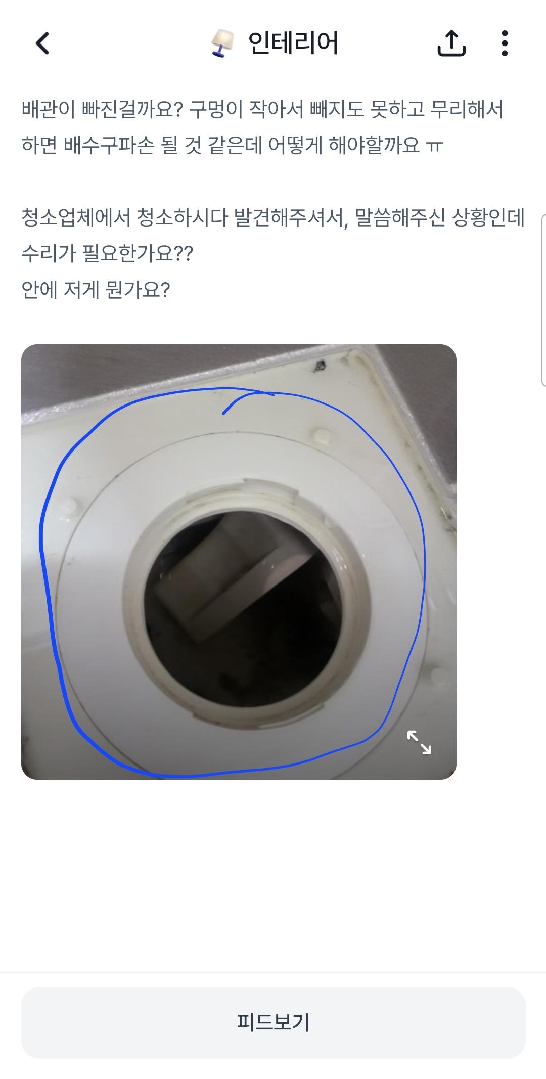 이번에 아파트에 이사를 가게 되었는데 청소 중 아파트 세대 내 화장실 배수구 안에 뭔가 빠진것 처럼 되어있어요