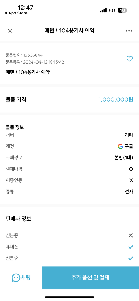 바로템에서 계정을1.000.000원 에구매를하였고 구매한지는 7주일 되었습니다. 계정이중연동x 란에 표기가되있고