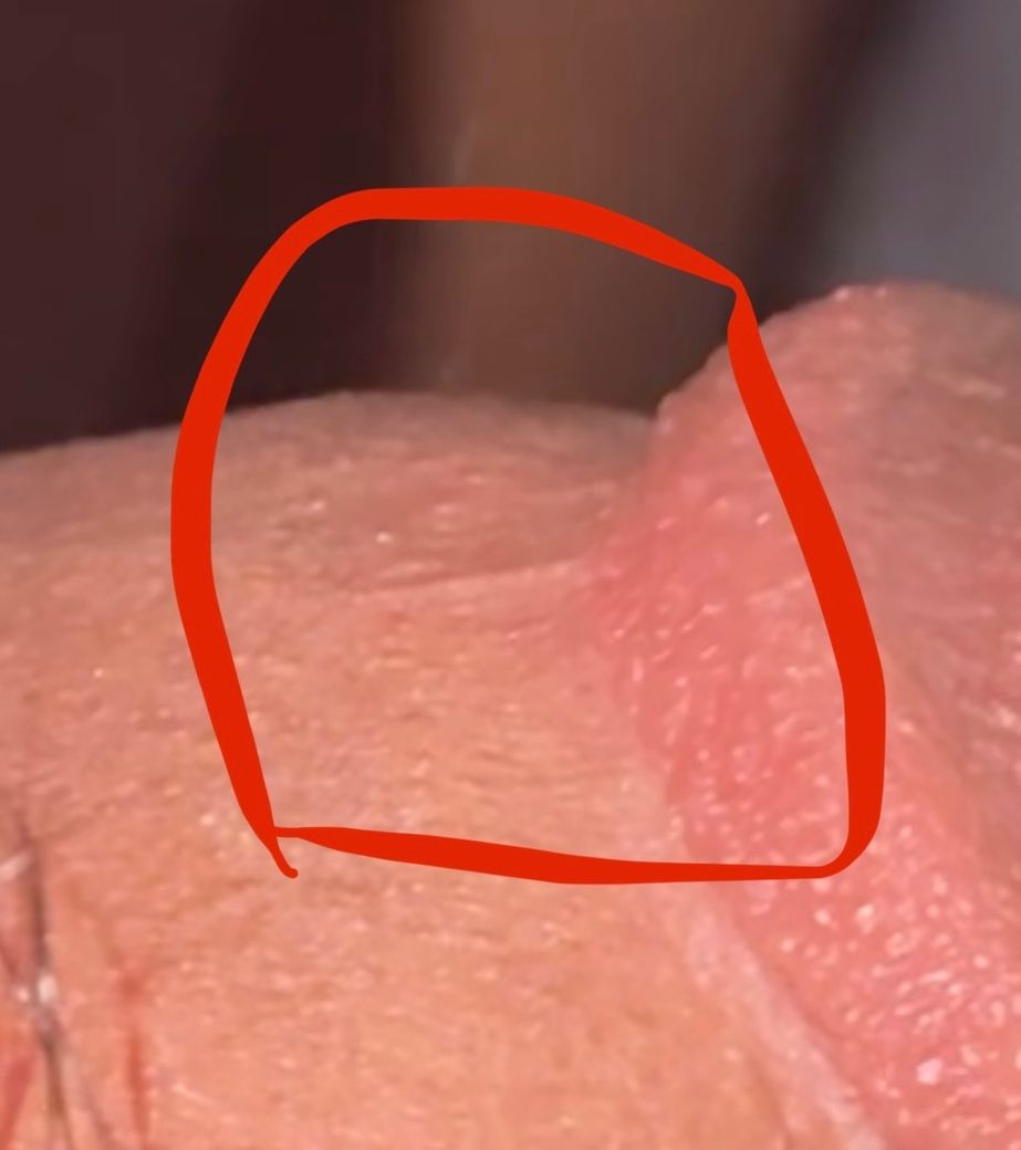 사진 기준으로 보면 귀두 등쪽 정중앙에 있는 얕은 선과 미세하게 솟은 질감으로 보입니다. 표면이 매끈하고 색 변화나 병변의 경계가 뚜렷하지 않으며, 하나의 선 형태로 이어져 있어 정상 해부학적 구조인 귀두 정중선(중앙 봉합선) 또는 개인차에 따른 정상 주름으로 판단됩니다.
