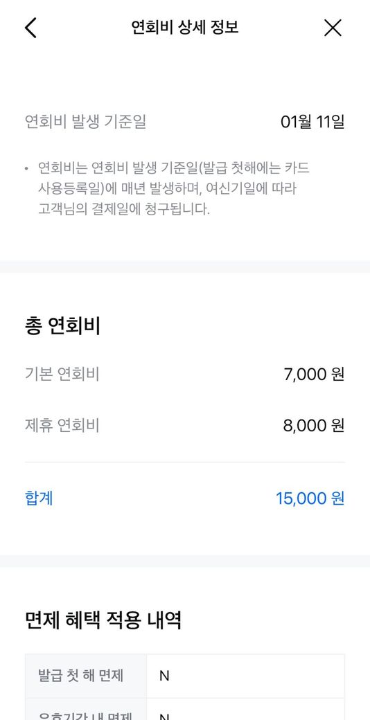 일단 1월에 발급받으셨다면 내년 1월에 연회비가 또 부과됩니다.