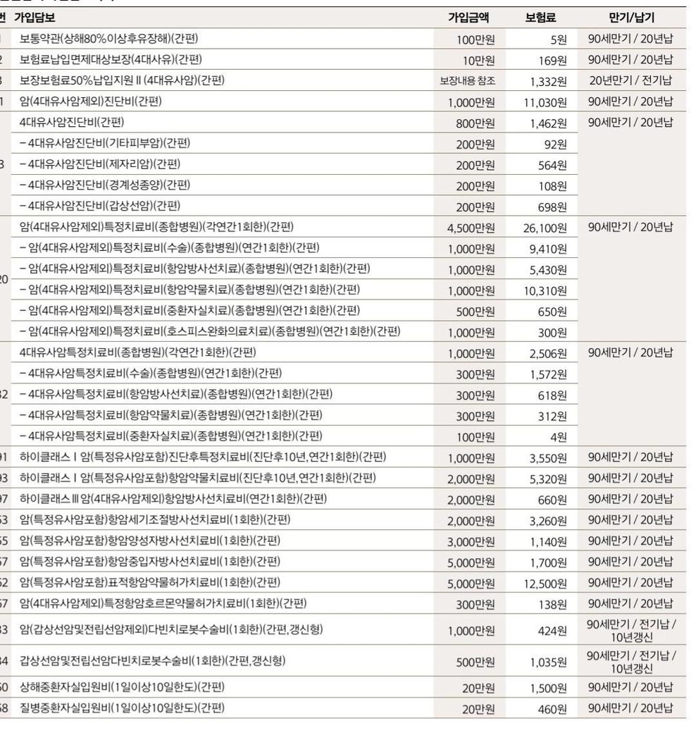 이렇게인데, 추가로 들으려고 하는 보험 설계에서는
