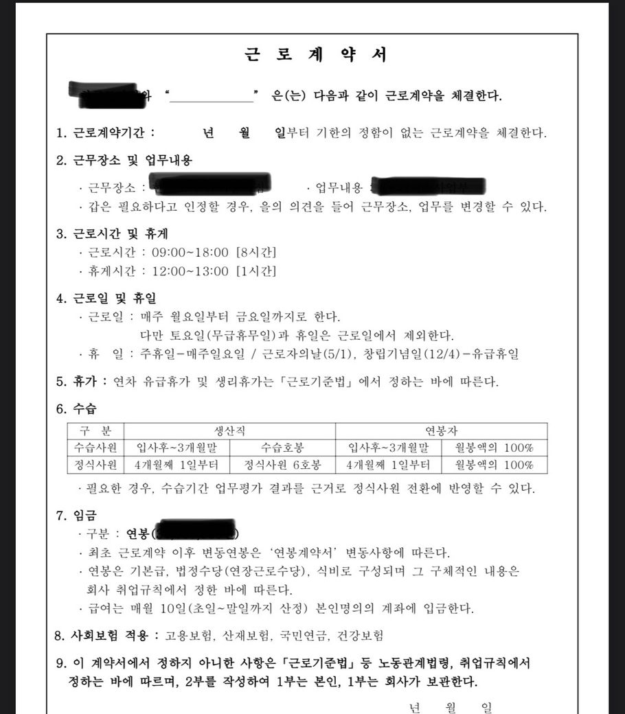 보통 그런 경우 근로계약서가 2장, 3장으로 넘어가기 때문에